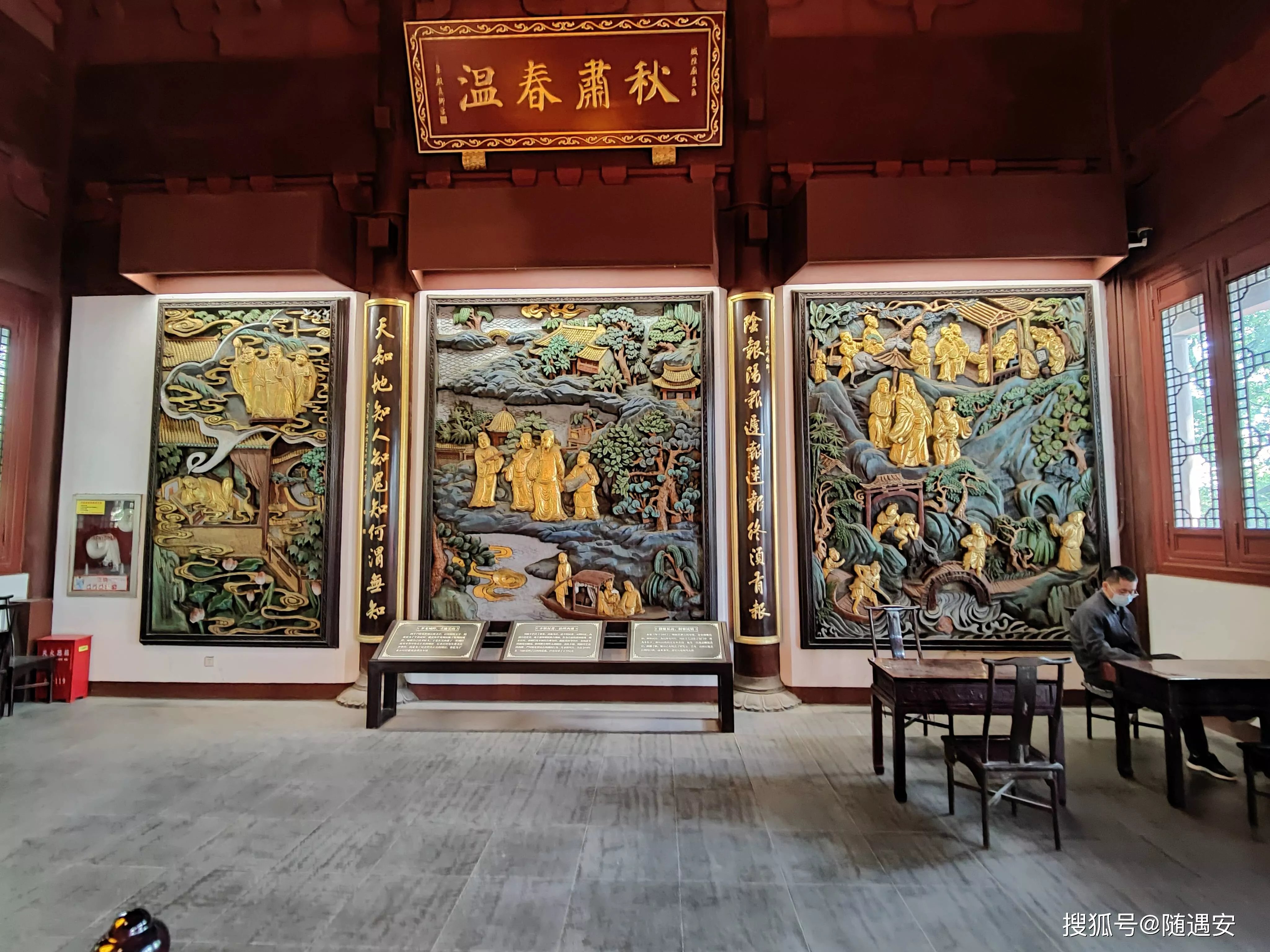继续前行来到城隍阁景区,在门口半价优惠15元门票,检票入内。园墙上有石刻浮雕,讲述吴山故事。