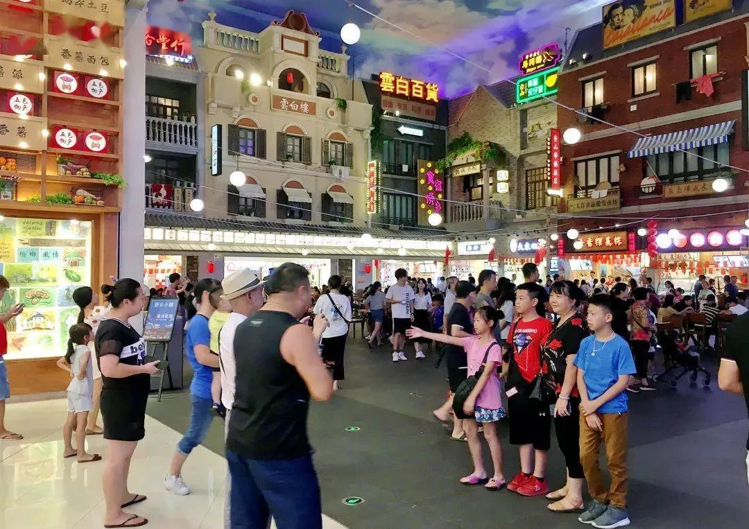 “侨乡小镇”建造了十分逼真的街景,风格仿造了19世纪初期的侨乡集市。走在这里,仿佛置身于电影之中。同时,还可以购买五邑地区的特色产品,真实感受侨乡风情的街区、饮食和非遗文化。