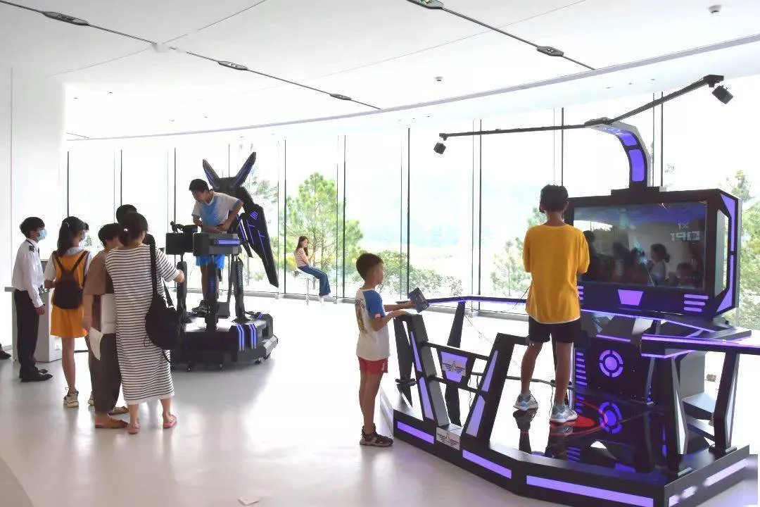 除了泡温泉、游湖,你还可以到小镇内的飞行主题馆体验飞行!这个飞行体验馆总占地1500 m²,主题馆按展览功能主要分为航空体验区、航空航天文化讲解区、航天航空课堂三大板块。
