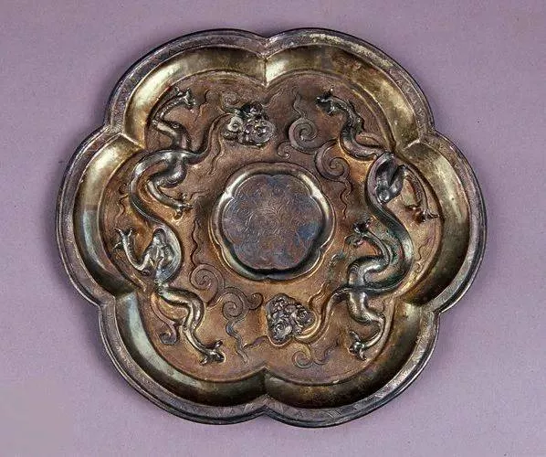 宋 鎏金双龙纹银盘 武汉博物馆藏