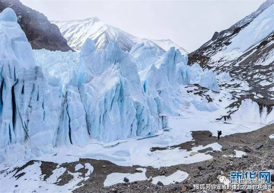 前往海拔6500米珠峰前进营地途中的冰塔林(5月20日摄)