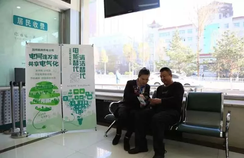 11月2日,黑龙江鹤岗供电公司员工贺丹在工农供电营业厅向客户介绍网上交电费方法。(封沂池)