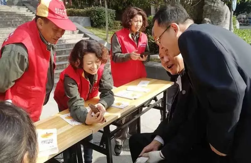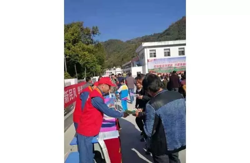 11月2日,陕西安康供电公司员工在汉滨区脱贫攻坚·茶栈村“道德模范标兵”表彰会现场向居民介绍网上交电费方法。(张永 朱倩倩)