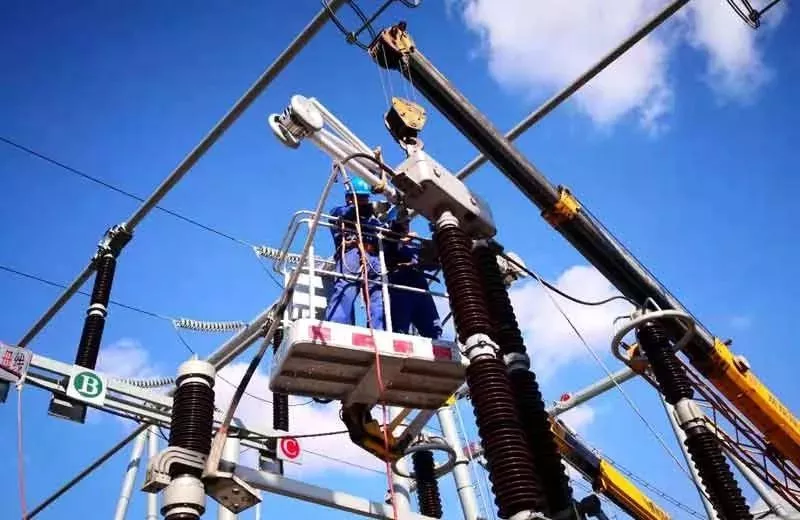 3/811月2日,江西电力检修公司员工陈璟、何帆在500千伏马回岭变电站例行试验500千伏马石Ⅱ线避雷器。(熊一凡)