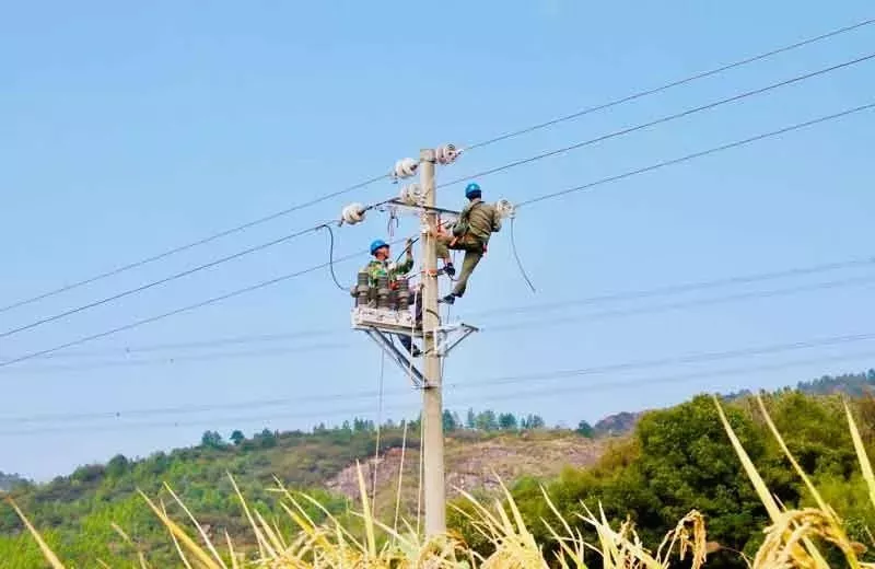 11月4日,江西上饶横峰县供电公司员工在姚家乡10千伏白姚线52号杆安装智能开关。(钱韵)