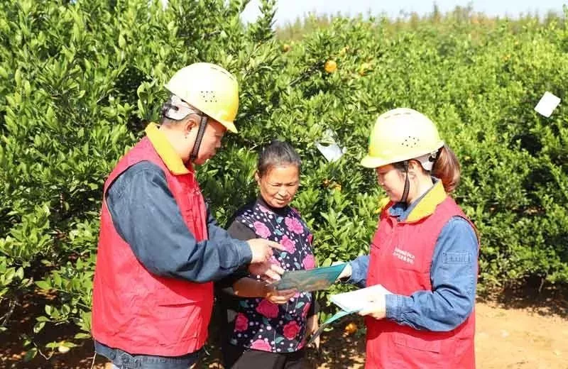 11月3日,湖南永州冷水滩供电公司员工到伊塘镇茶花村橘子园种植基地向村民介绍安全用电知识。(吴佳一)