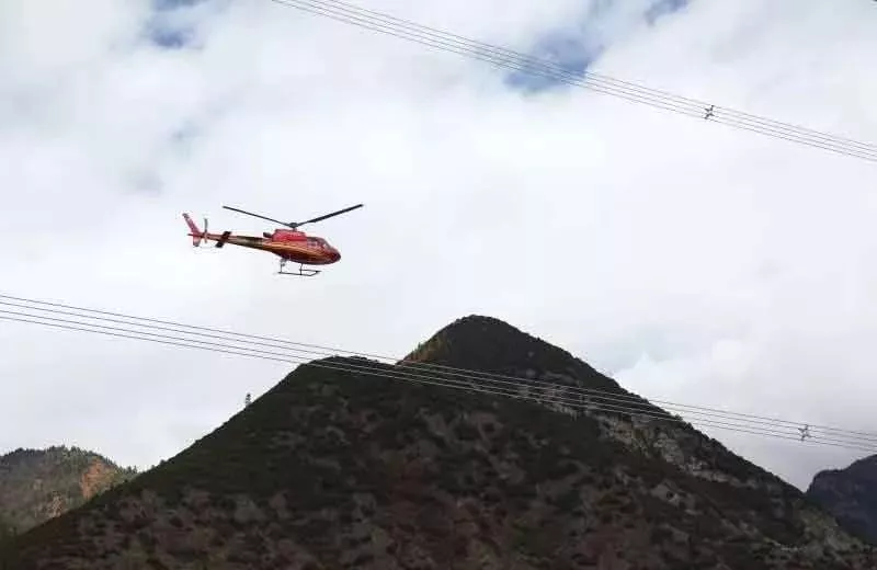 5/811月3日,国网通航公司SG1122(B-7965)机组在西藏林芝起降点作业, 红外巡视500千伏波林Ⅰ、Ⅱ线。(李倩)