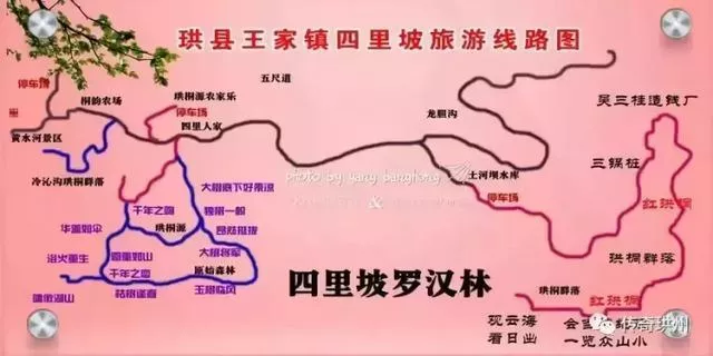 水泥便道,有“红珙桐”2株、吴三桂造钱厂、千年古树、成片“珙桐林”4处,设有停车场,路程稍远。