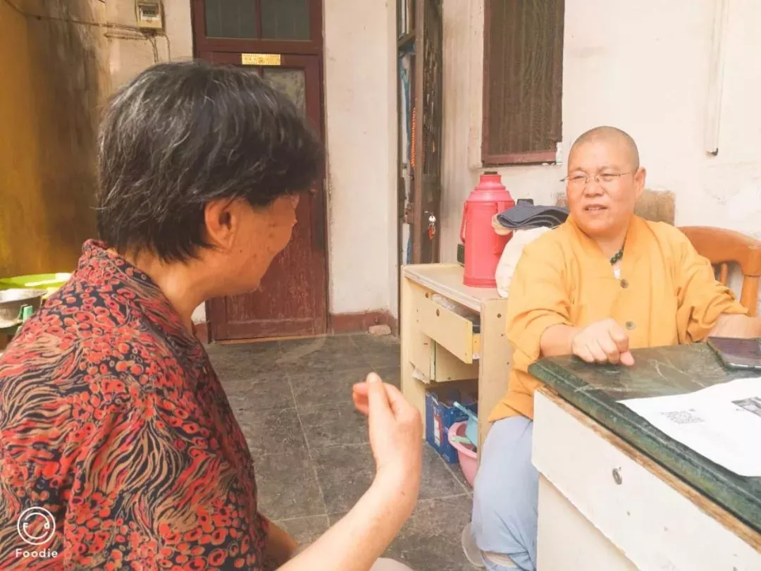 采访到一半,有位居士奶奶找宏广师父问些事情,附近的居士有空都会过来寺庙拜拜,