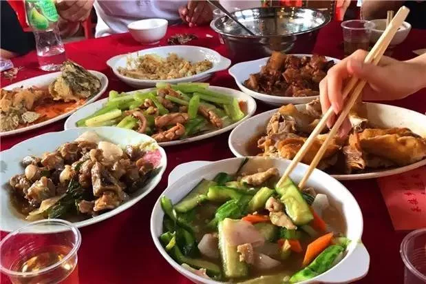 观音巡游结束之后,来参加活动的乡亲齐聚一堂,品尝“平地观音斋”。“平地观音斋”是平地村民独特烹调的菜式,很受村民赞赏。