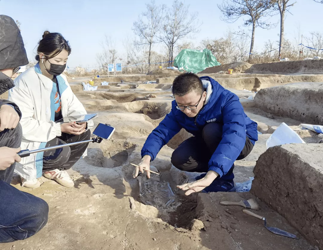 除此之外,我们还根据同学们在直播中的实时反馈,在讲解内容上进行了及时调整,以满足同学们不同的需求,努力做到详略得当。我们还为大家现场演示了刮面、找边、墓葬的清理、绘图等发掘记录方法,用现场实践给予同学们更加直观的认识。在队员们的热情带动下,同学们热情响应,积极参与互动,提出了有关遗址发掘、实地保护、葬具形制、器物类型、日常生活等方面的问题。