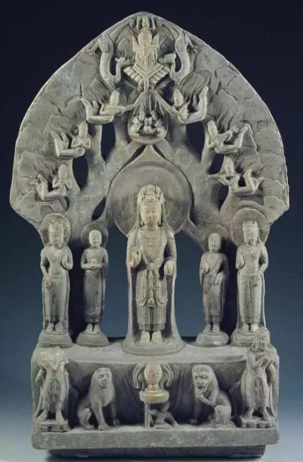 北齐造像有山东青州式和河北曲阳式,曲阳造像为白色大理石制作,创造出大量镂空的透雕造像组合形式,这一尊为典型的河北曲阳造像。可能每一地区的审美都是一脉相承的,几百年后的宋代,这一地区出产的定窑瓷器,与这纯净洁白的大理石雕塑一样,呈现一种素雅之美。