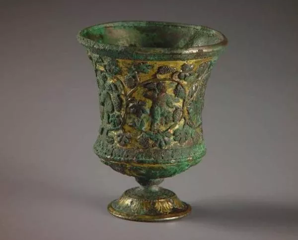 人物动物纹鎏金银高足铜杯 公元4-5世纪 1970年大同市南郊出土