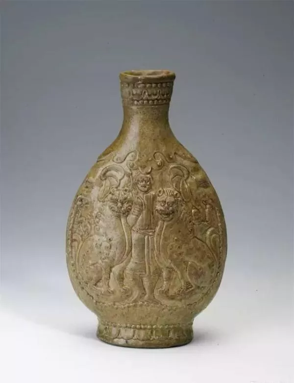青釉胡人戏狮扁壶 北齐 太原市玉门沟出土