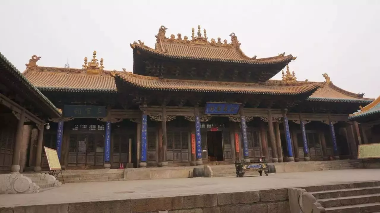 是一处道教庙宇,位于介休市西北隅。寺庙坐北向南,南北长110米,东西宽40米,占地面积3547平方米。庙前有影壁,壁心镶嵌着琉璃麒麟图案。中轴线上依次为金刚殿、过殿、献殿、三清楼、后殿。三清楼与献殿两侧为东西配殿,后殿两侧为左右朵殿,共计9座殿宇。东西两座配殿内,现存1000多尊高1.2米的道教人物彩塑,均为明代彩塑之上品。塑像内容主要是道教中被尊为四御的南极勾陈大帝、北极紫微大帝和元始天尊、太上老君,以及其它各路神祗,千姿百态,表情各异,十分壮观,为道教彩塑中难得的珍品。庙内所有琉璃制品,色彩纯正明丽,造型准确生动,是中国庙宇琉璃艺术品中保存最完好的珍品,被称为“琉璃建筑艺术的宝库”。2001年,被公布为全国重点文物保护单位。