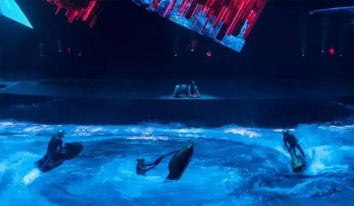 水池中设有极为复杂的水下升降机及舞台特效设备,舞台上空设有吊挂系统及其他舞台设备,可完成演员从空中马道或栅顶飞行降落等动作。