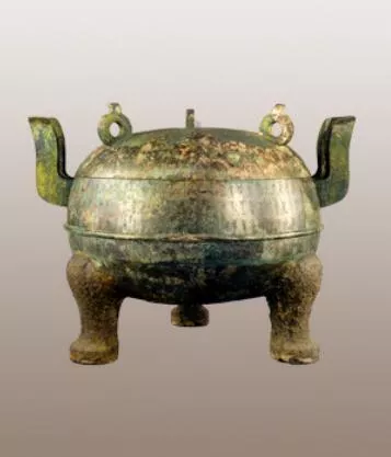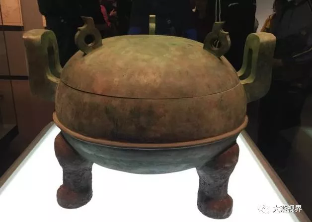 3、战国 中山王 铁足大铜鼎礼器。1977年平山县三汲村战国中山王墓出土,高51.5厘米。是战国中山王墓出土九鼎中的首鼎。铜身,铁足。外壁刻有铭文77行469字,是目前所见铭文最长的一件战国铜器。铭文记载了中山国相邦司马赒率师伐燕、扩大疆土的功绩,告诫后代吸取历史教训,警惕周边诸国的进攻,具有重要的历史价值。铭文字体修长秀丽,文句典雅优美。