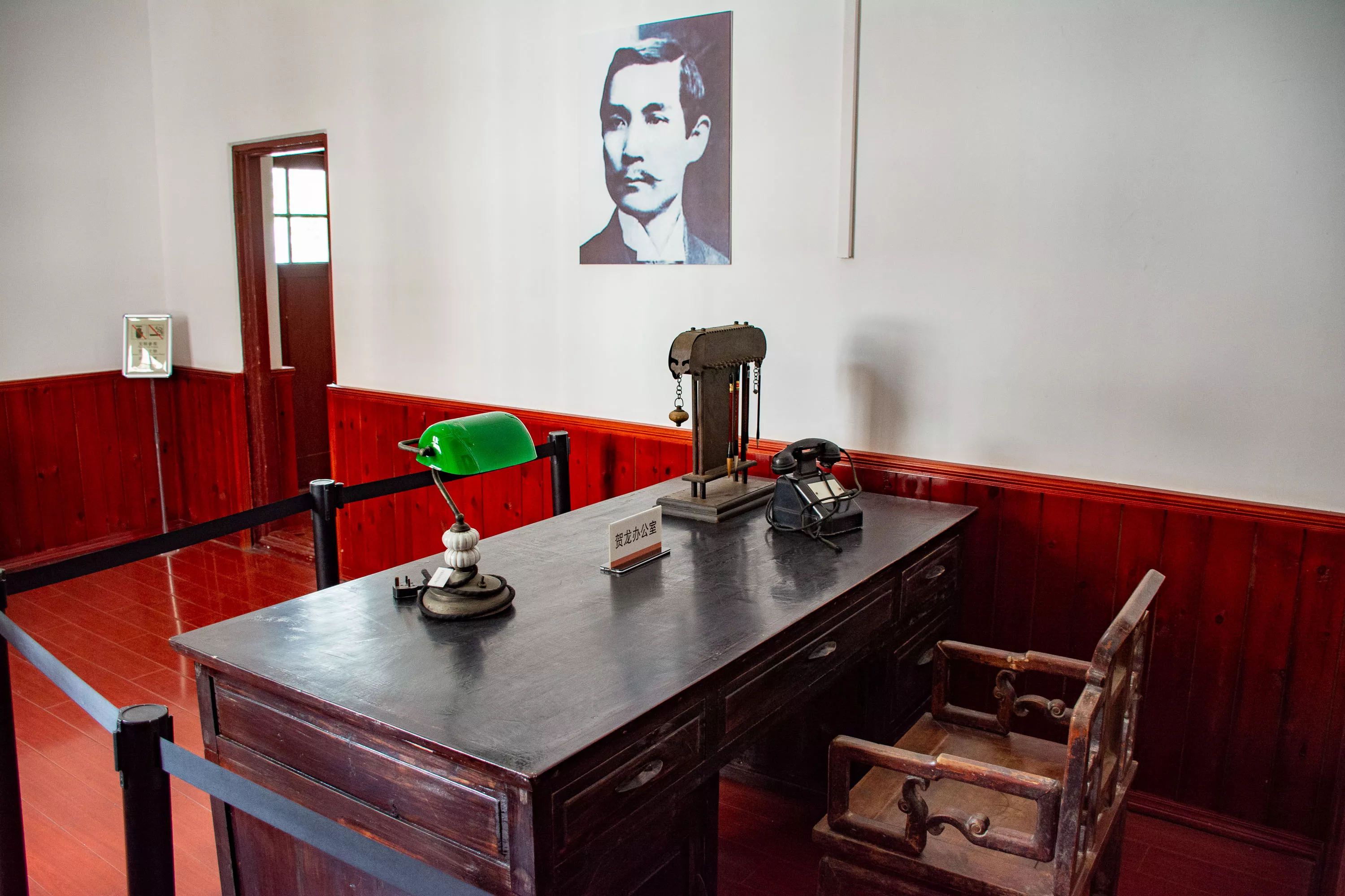 旧军部保留着贺龙当时的办公室,室内布置很简单,一块红地毯、一张办公桌,还有一问电话和两个椅子,背后有张床可以休息,就像现在的一室内,厅和卧室合二为一。