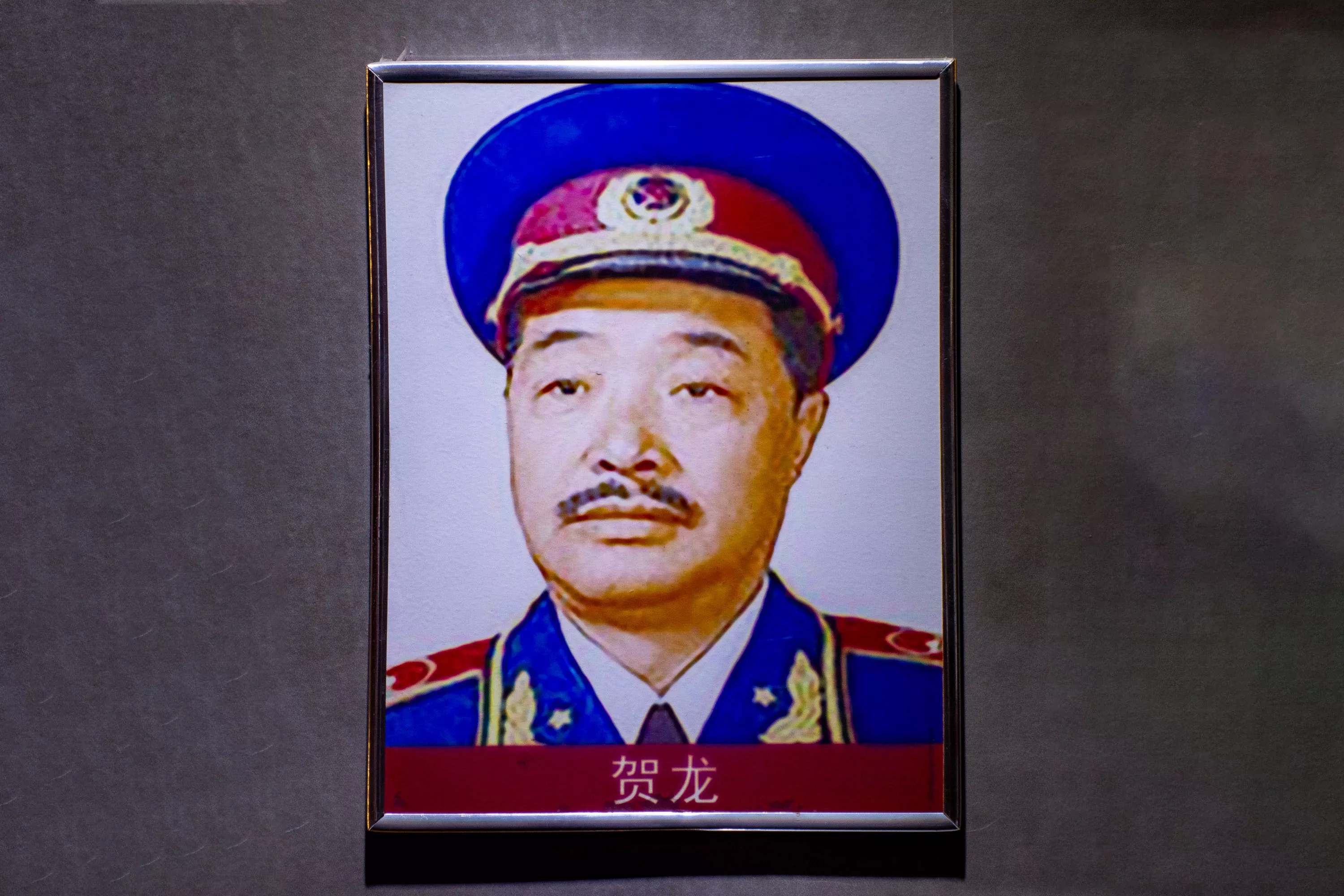 旧军部大楼内挂有贺龙当军长时的老照片。贺龙生1896年3月22日,于1969年6月9日逝世,享年73岁,自称用“两把菜刀闹革命”起家,曾任讨袁护国军指挥、湘西护国军营长、靖国军团长、四川警备旅旅长、混成旅旅长、建国川军师长。