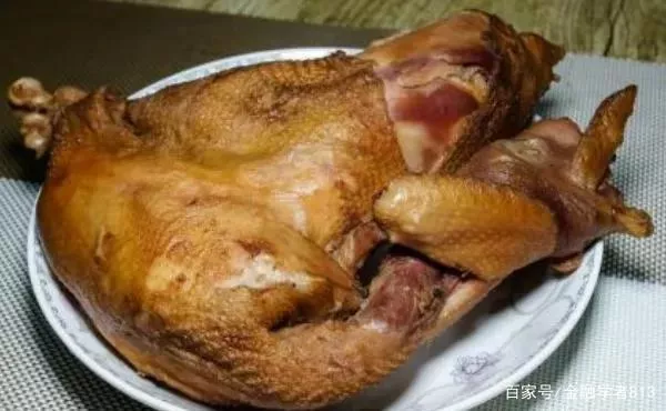 4、道口烧鸡。安阳市滑县道口镇,该烧鸡造型美观、皮色新艳、熟烂离骨、鲜 嫩异香,以一斤半净重的草鸡为主。义兴张烧鸡为传统名优,画宝刚烧鸡为后起之秀。