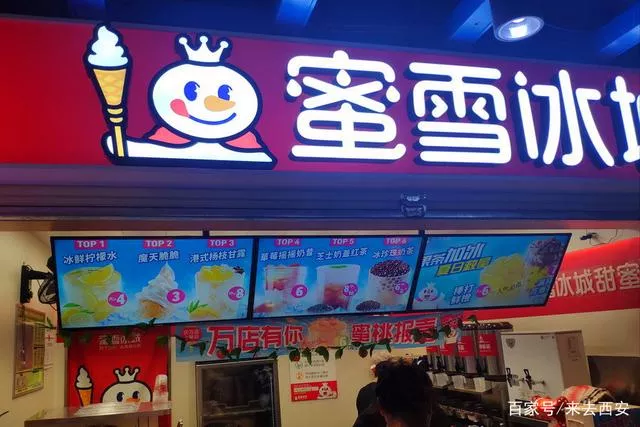 没错,在西安街头三五步就有一家的蜜雪冰层就是起源于河南郑州,保守估计这个品牌在西安有200家店。三五块钱一杯的茶饮或冰淇淋,既平价又美味,把河南人低调务实的特点发挥得淋漓尽致,所以在西安市场上很受欢迎。