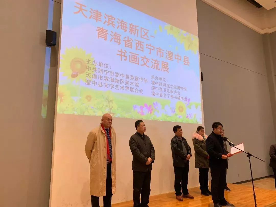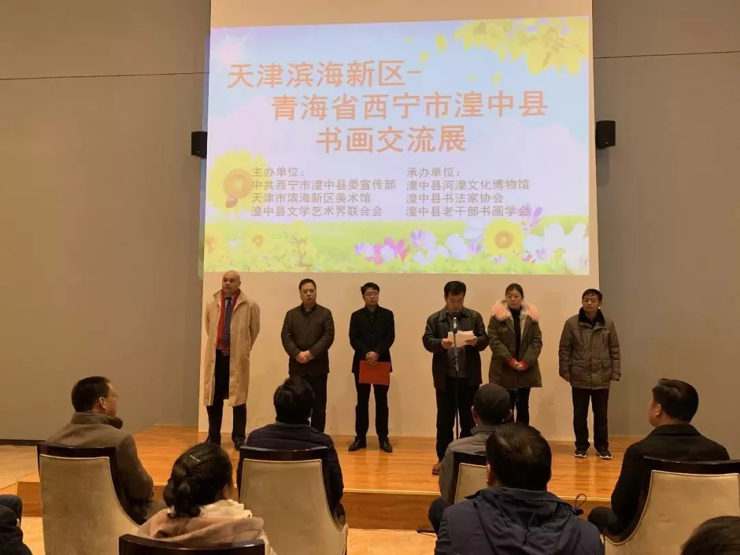 11月21日,由中共湟中县委宣传部、天津市滨海新区美术馆、湟中县文联主办,湟中县河湟文化博物馆、湟中县书法家协会、湟中县老干部书画学会承办的“天津滨海新区——青海省西宁市湟中县书画交流展”开展仪式在河湟博物馆举行。天津滨海新区美术馆党支部书记王希宏、中国书协会员、天津书协理事兼创作评审委员会委员郝军等来自天津的艺术家及湟中县委常委、宣传部部长赵国武与我县县委各部门、县直各机关单位分管领导、书画爱好者共计60余人参加了活动。