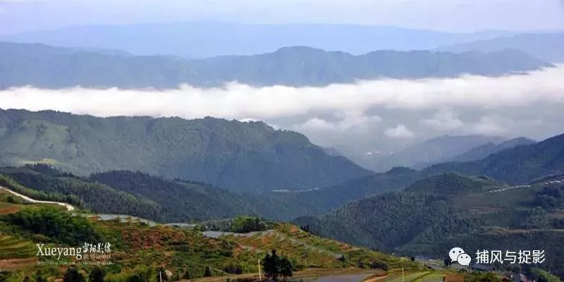 湖南有怀化,怀化有溆浦,溆浦有高寒山区,在高山寒区背山村有一大板块梯田的风景区,因为这块美丽的梯田景区融入了花瑶文化,人们都习惯称之为”山背花瑶梯田“。2017年5月29日,端午节,晴,气温28度。上午8时,笔者如约前往探究,车从海拔300米的竹坪镇开始,沿着乡道,一直往上爬行,连片纵横的梯田忽隐忽现,直到山背村1400米的南瓜地形景观点,长达7.5公里,驻车停观点达6处之多。回味:溆浦山背 ,山背花瑶白云边,云上梯田美如画。