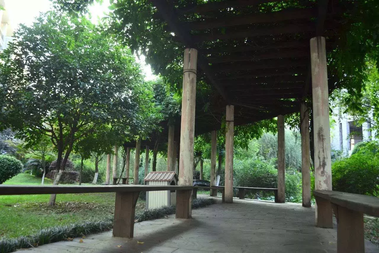 文科楼小园林里有一条长廊