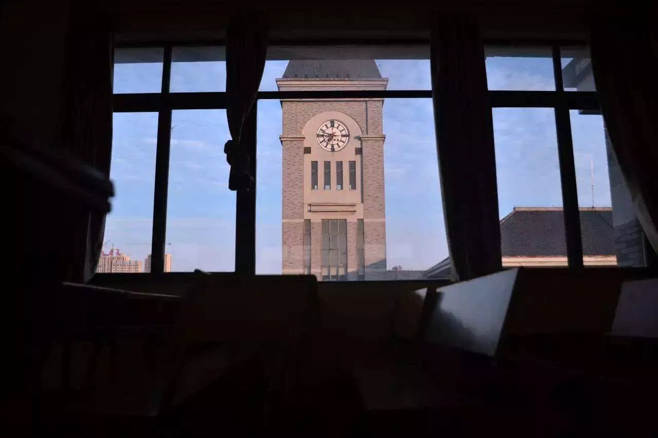 这是一间可以看见钟楼的教室