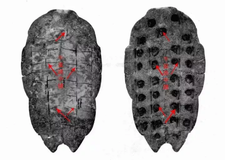 以殷墟龟甲为例,大致为: