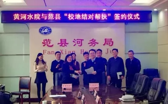 2月27日,我校水利工程学院院长陶永霞、副院长冯峰带队前往范县黄河河务局、水利局开展“校地结对帮扶”精准扶贫对接工作,与两家单位签订了合作协议。