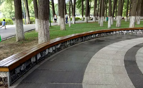 解放公园用建筑垃圾搭配铁丝网和木板,做成长椅。沙湖公园用废弃砖石、鹅卵石、铁丝网做的梦想花园景墙护栏,也可用作游客休息的长椅。