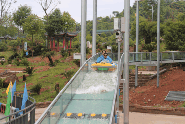 玻璃漂流滑道两旁都是郁郁葱葱的树木