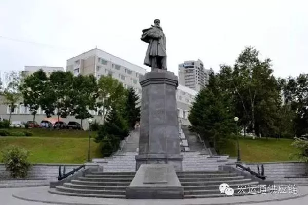 马卡罗夫是俄罗斯声名显赫的舰队统帅,在俄日海战中,由于他乘坐的铁甲舰爆炸而不幸阵亡。纪念碑坐落在海滨路边,沿台阶拾级而上,到顶端广场,放眼望去阿穆尔湾的美景可以尽收眼底。