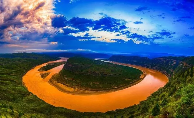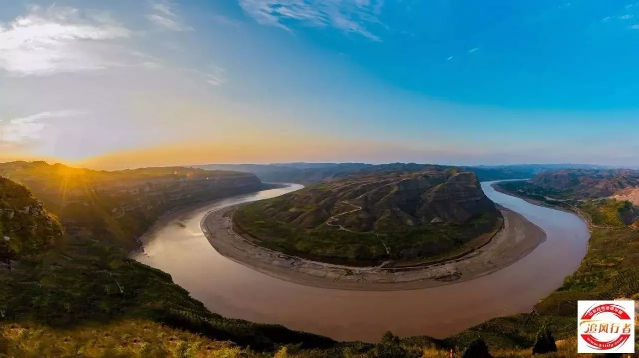 在乾坤亭内极目眺望, 形似太极图的乾坤湾尽收眼底。弯道弧度320度以上, 堪称天下黄河第一湾 。它形如太极阴阳鱼 ,环抱郁郁葱葱的青山。山上住着人家 ,炊烟袅袅。岸边的草滩上, 一 群黄牛正在河边饮水。乾坤湾不仅壮美 ,还是一幅黄土高原的生活图画 。