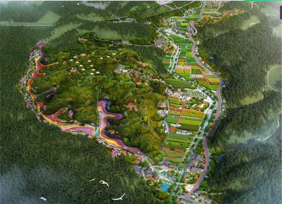 将镇区和7个美丽乡村的通道打造成集生产、生活、生态旅游共享的旅游景观廊道。同时进行缤纷多彩谷、翟山公园、特色美食街、休闲农庄等景点的综合开发,完善道路交通、游客服务中心、生态停车场、3A旅游公厕等配套服务设施。