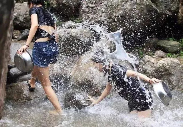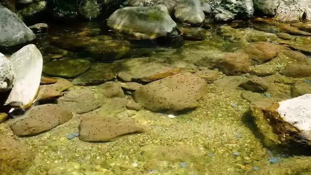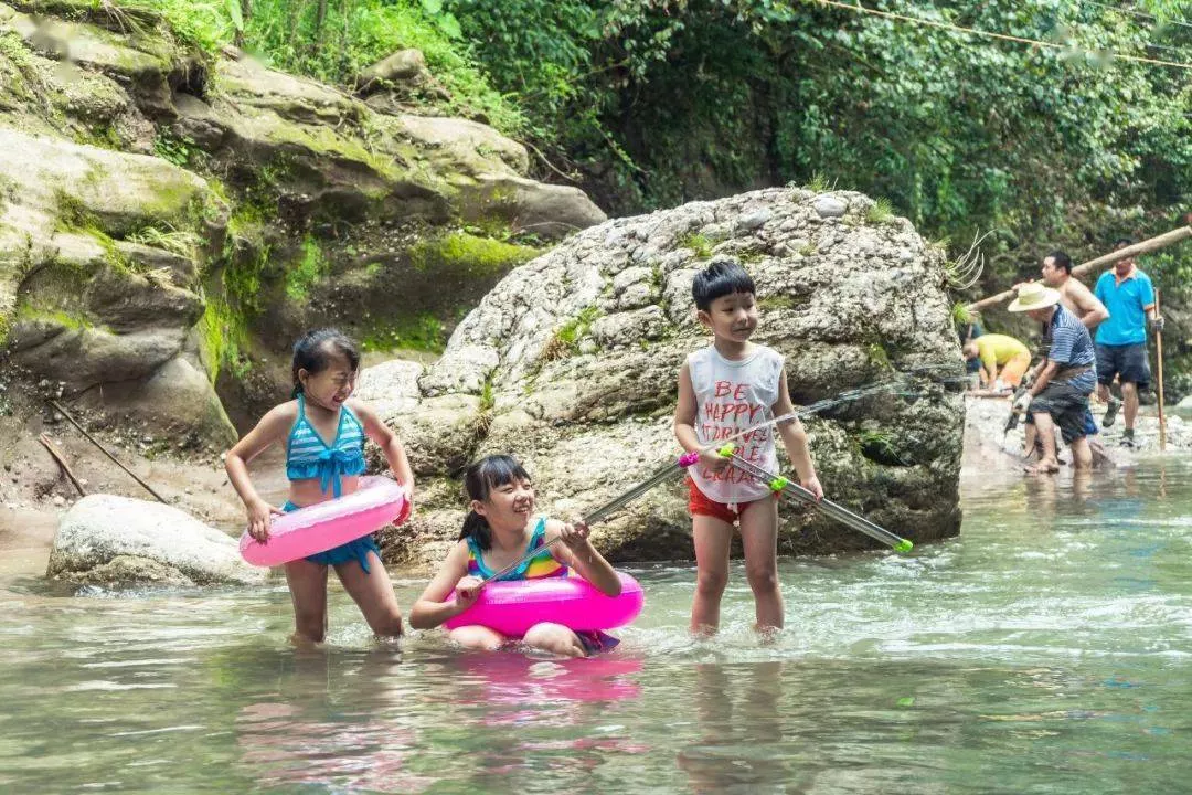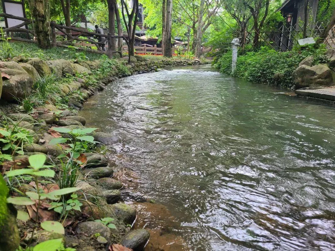 清澈的泉水缓缓流淌在各个角落,大人小孩都可以在水上欢乐玩耍。沿着溪水越往上走,水质越好,踩水、打水仗都很方便。