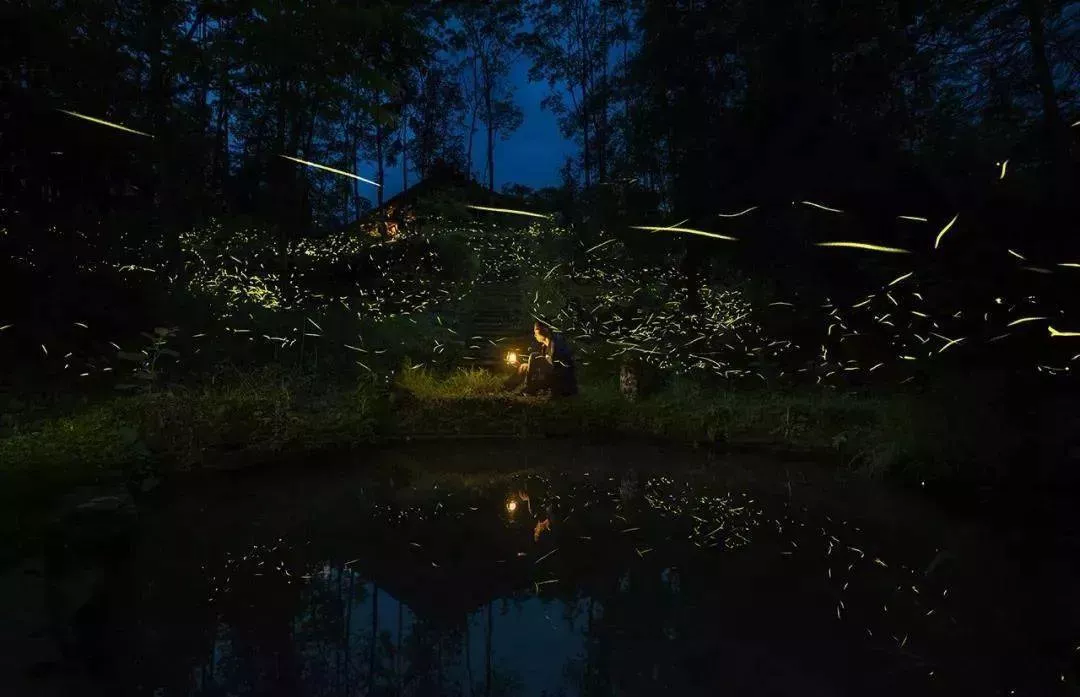 晚上八点半到九点左右,正是萤火虫活动的时候,沿着农家乐往上的公路徒步去寻找它们吧!点点萤火,在山林里忽闪忽闪,太迷人了~
