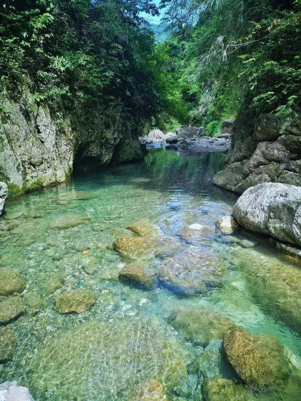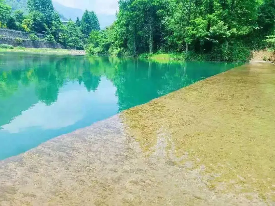这里保留着属于乡野的那份纯真,水浅且清,河滩边上也有平坦的地方可以歇息,绿树山野环绕,真真是又美又凉快!