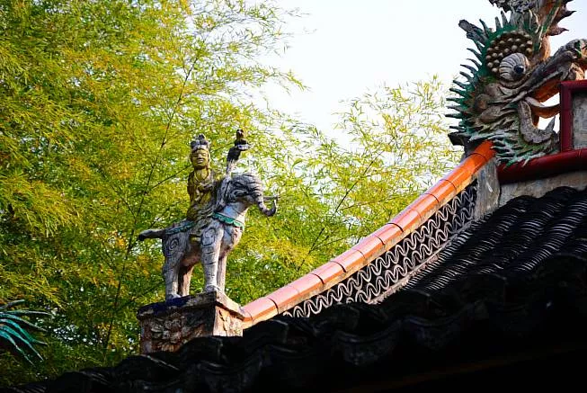 寺庙供奉的是佛教护法神韦驮菩萨,据说,在释迦佛入涅时,邪魔把佛的遗骨抢走,韦陀及时追赶,奋力夺回。因此佛教便把他作为驱除邪魔,保护佛法的天神。