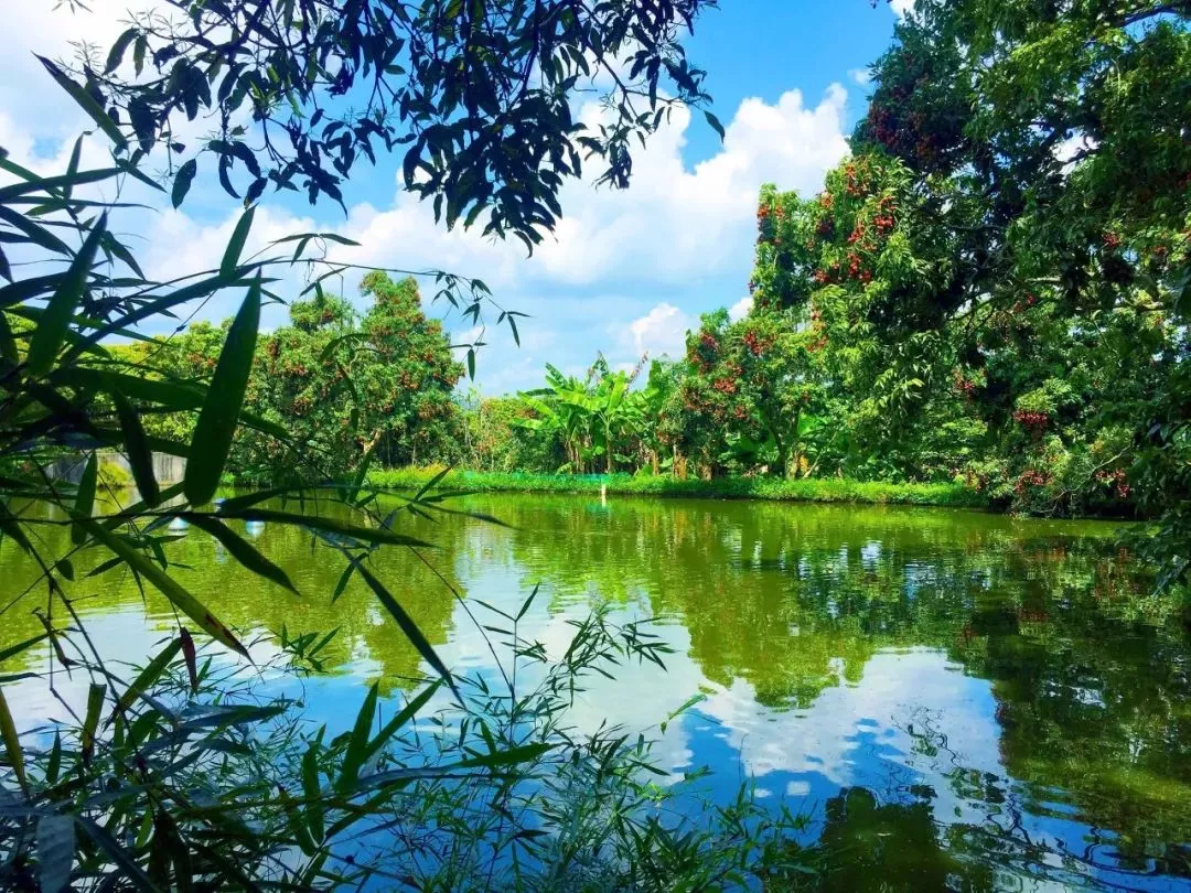 蒲芦山省级森林公园绿道隐逸在粗石村万亩荔枝森林海中贯穿而过,周围古树名木参天、湖光山色、蝉鸣鸟叫,尽显一派岭南乡村“氧吧”的活力。