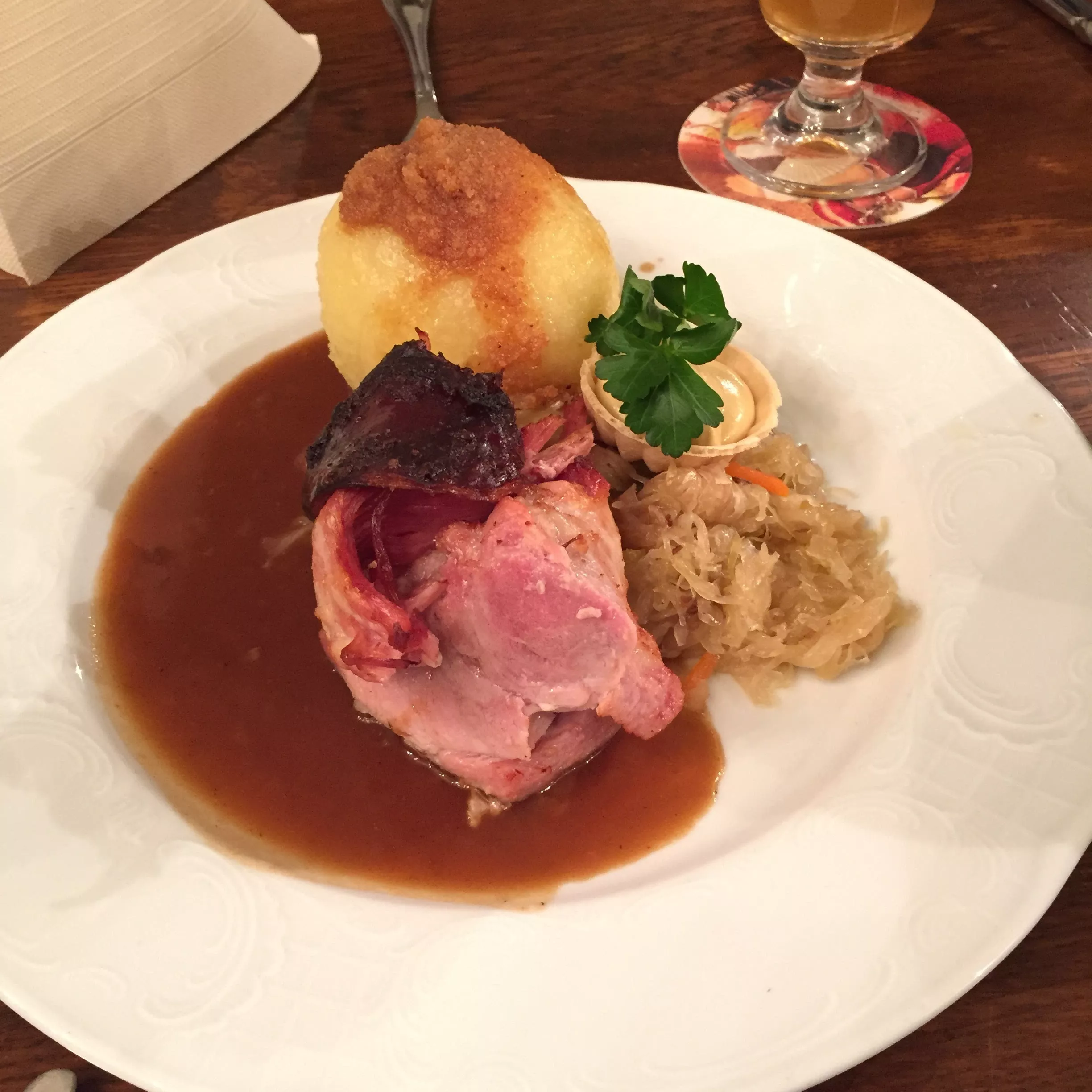 网上力荐的猪肘,特色食物。点评特别强调主菜分量大,千万别点多!想到前天让人忧桑的柏林猪肘,三个妹子点了一份主菜。结果。。。这叫分量大??