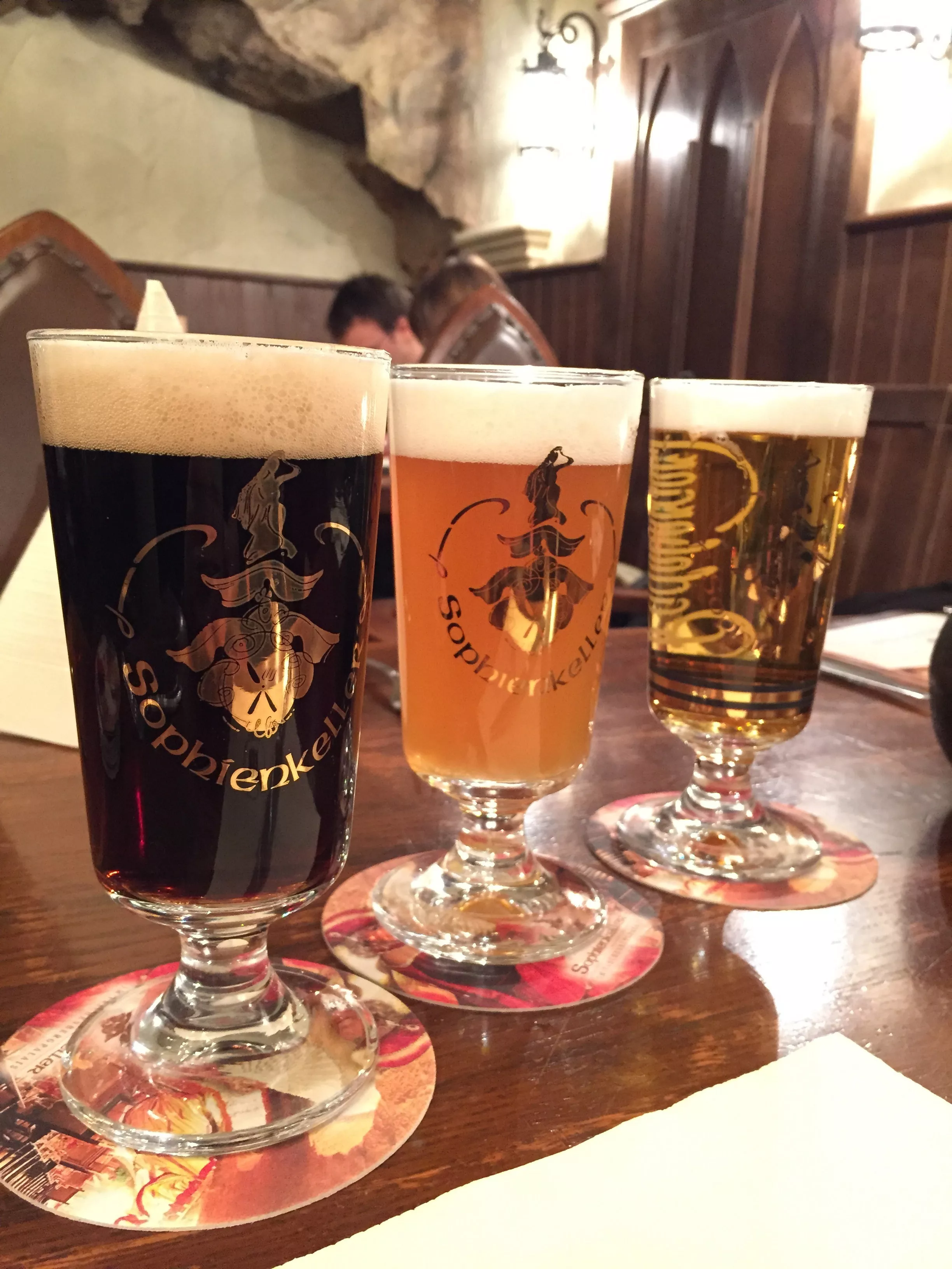 德累斯顿的夜晚,很安静。七八点时候很多店铺已经关门,我们巡着网上推荐的店址找到了Sophienkeller Restaurant,餐厅位于市中心曾经被拆毁的SHOPHIE教堂地下室内,主营萨克森传统美食。店面布置的很有德国风情,但是美女服务员却都穿着俄式传统服装,让我一直纳闷到现在。。。