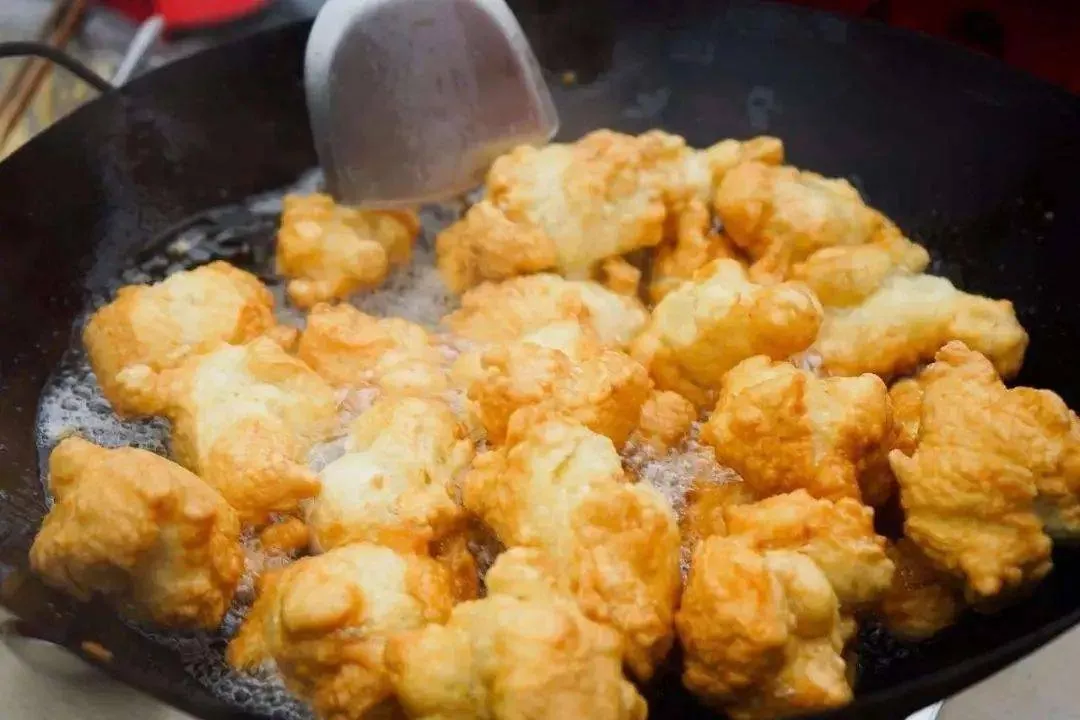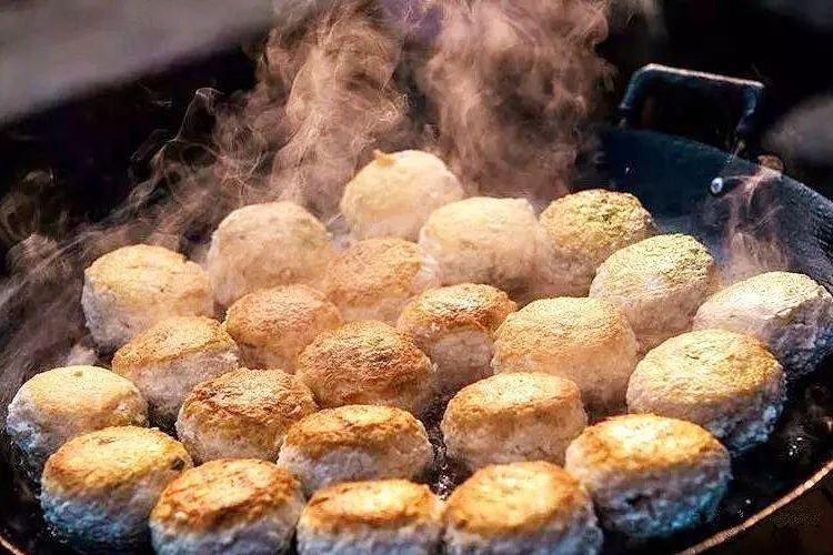 ↑泡鲞又叫炮响,和面时,鸡蛋代替了水,放入带鱼的尾巴(现在多用虾皮)和啤酒,做成团子后油炸。新鲜现炸的泡鲞油而不腻,吃起来松软可口,十分特别。
