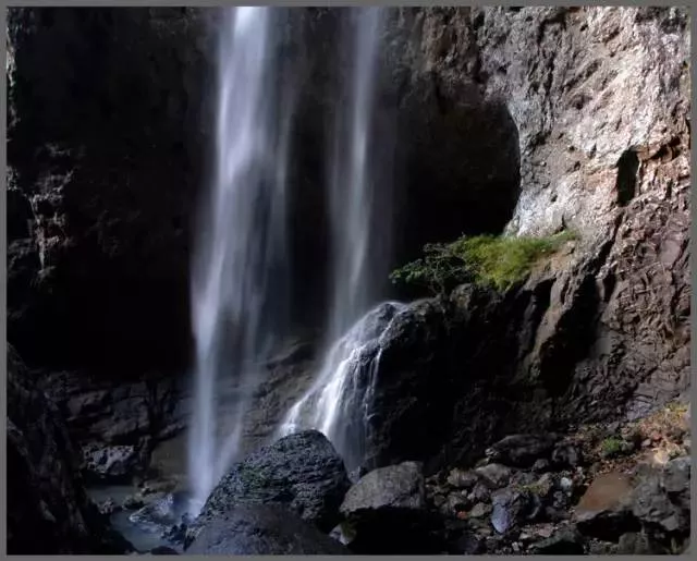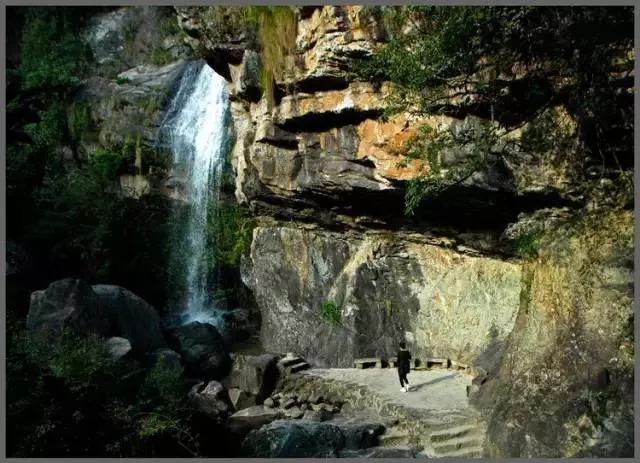 瀑布秀丽多姿,溪流回环曲折,潭池澄澈翠绿。