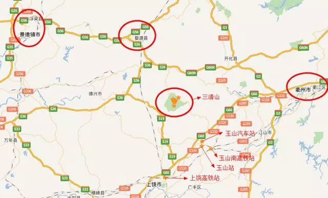 1,三清山周边有玉山站(火车站),玉山汽车站和玉山南站(高铁站),距离这三个站约有45公里左右,一个小时车程。