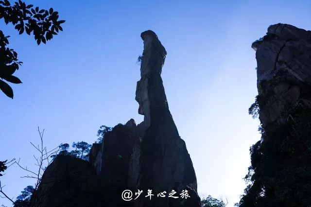 三清山绝景之一,海拔1200余米,峰高128米,腰围10余米,形似一条巨大蟒蛇,昂然勃起,欲腾空冲天而去,经亿万年风涛雨雪的洗礼,却依旧屹立不倒。