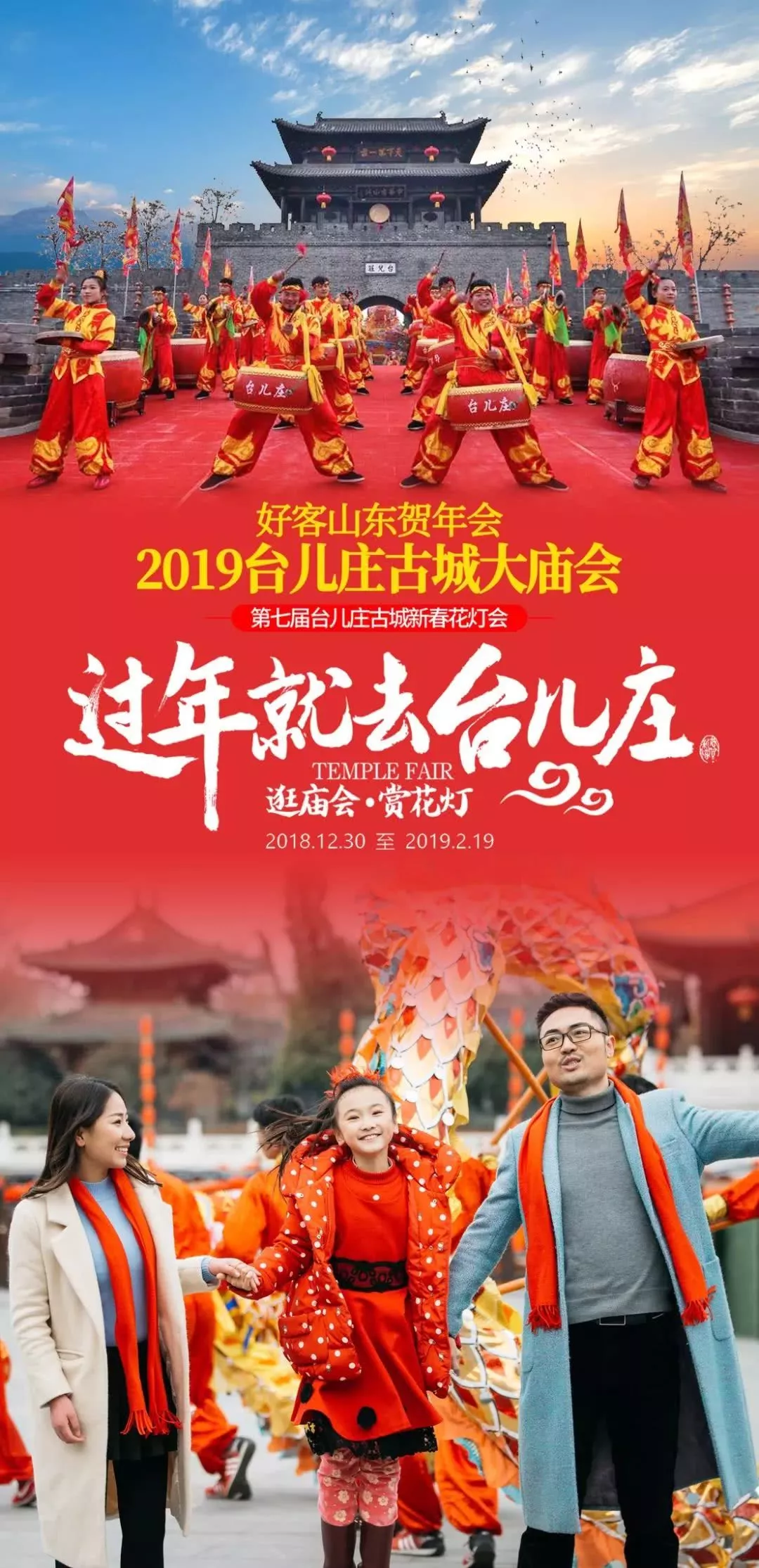 步入台儿庄古城西门,映入眼帘的是《福满古城》花灯组,两侧的花灯高低不一,中间的花灯高近20米,花灯前后写着“天下第一庄”几个字样,中间两条造型特异的龙环绕着,端以猪为形象的花灯还可以来回摆动,颇具看点,预示着新的一年大家幸福满满。