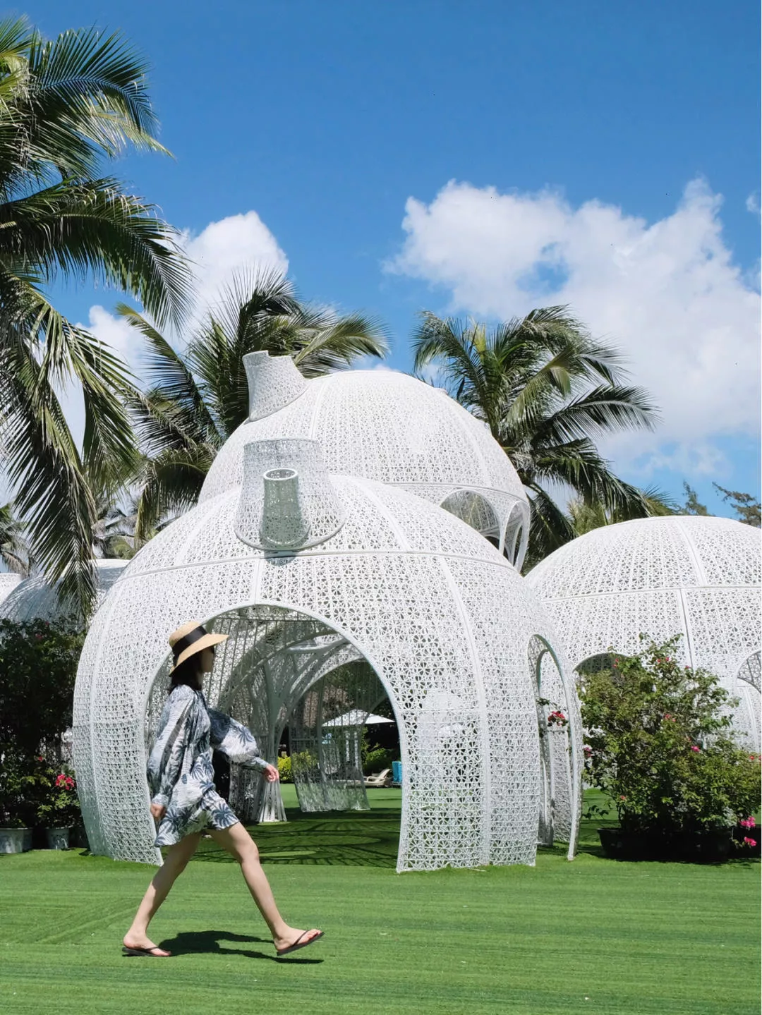 私人定制拍摄地:白色建筑、蓝色泳池、绿色椰林,本身就像一幅画一样!