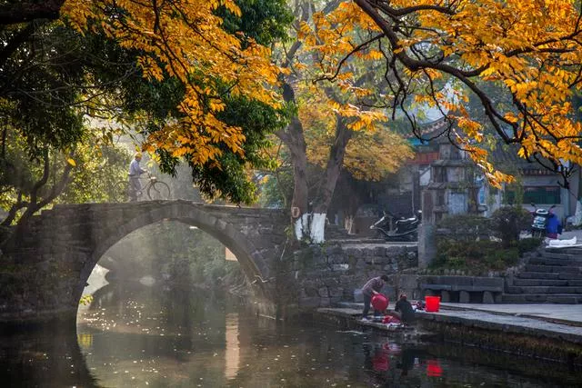 小桥、流水、人家,马致远笔下古朴、明洁、幽静的江南小镇,立刻呈现在一幅画中,让人心驰神往。